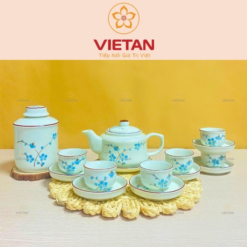 Quà Tặng Việt An chuyên cung cấp bộ ấm trà - hũ trà hoa đào xanh BAC06 in logo theo yêu cầu với số lượng lớn.