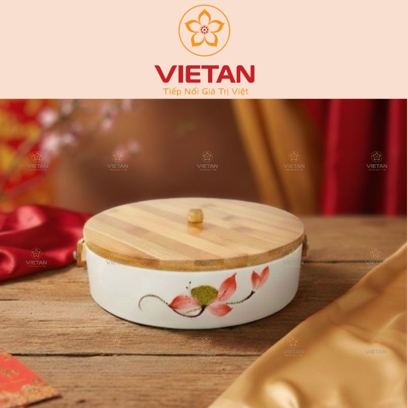 Quà Tặng Việt An chuyên cung cấp khay mứt gốm sứ nắp gỗ KM07 cho các doanh nghiệp, cơ quan, tổ chức. Với dịch vụ thiết kế riêng theo yêu cầu: in logo, thông điệp thương hiệu, Việt An sẽ giúp doanh nghiệp sở hữu món quà sang trọng và mang dấu ấn riêng.